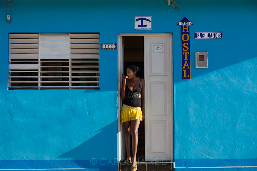 A woman standing in the door of a Casa Particular. These private homestays became very common in Cuba after the government allowed Cubans to rent out rooms in their houses to tourists in 1997.