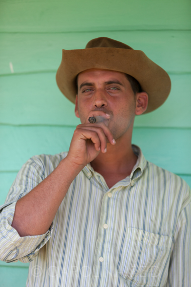 A local tobacco farmer sampling his product. Cuba is famous worldwide for the quality of its cigars and the Pinar del Río region is where Cuba's finest tobacco leaf is cultivated.